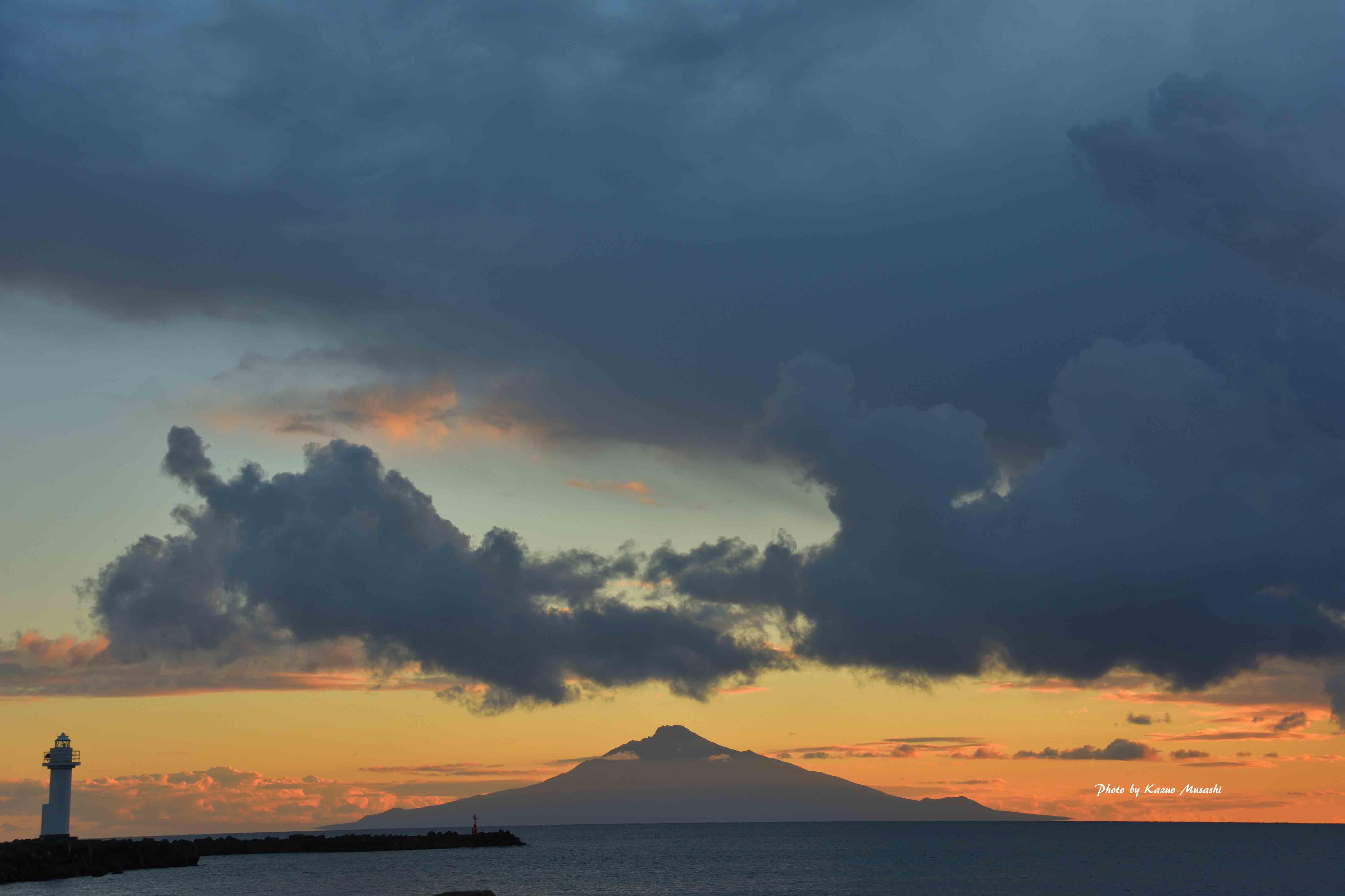 稚内の野寒布(ノシャップ)岬から望む「利尻山」、残念ながら赤焼けではなかった。