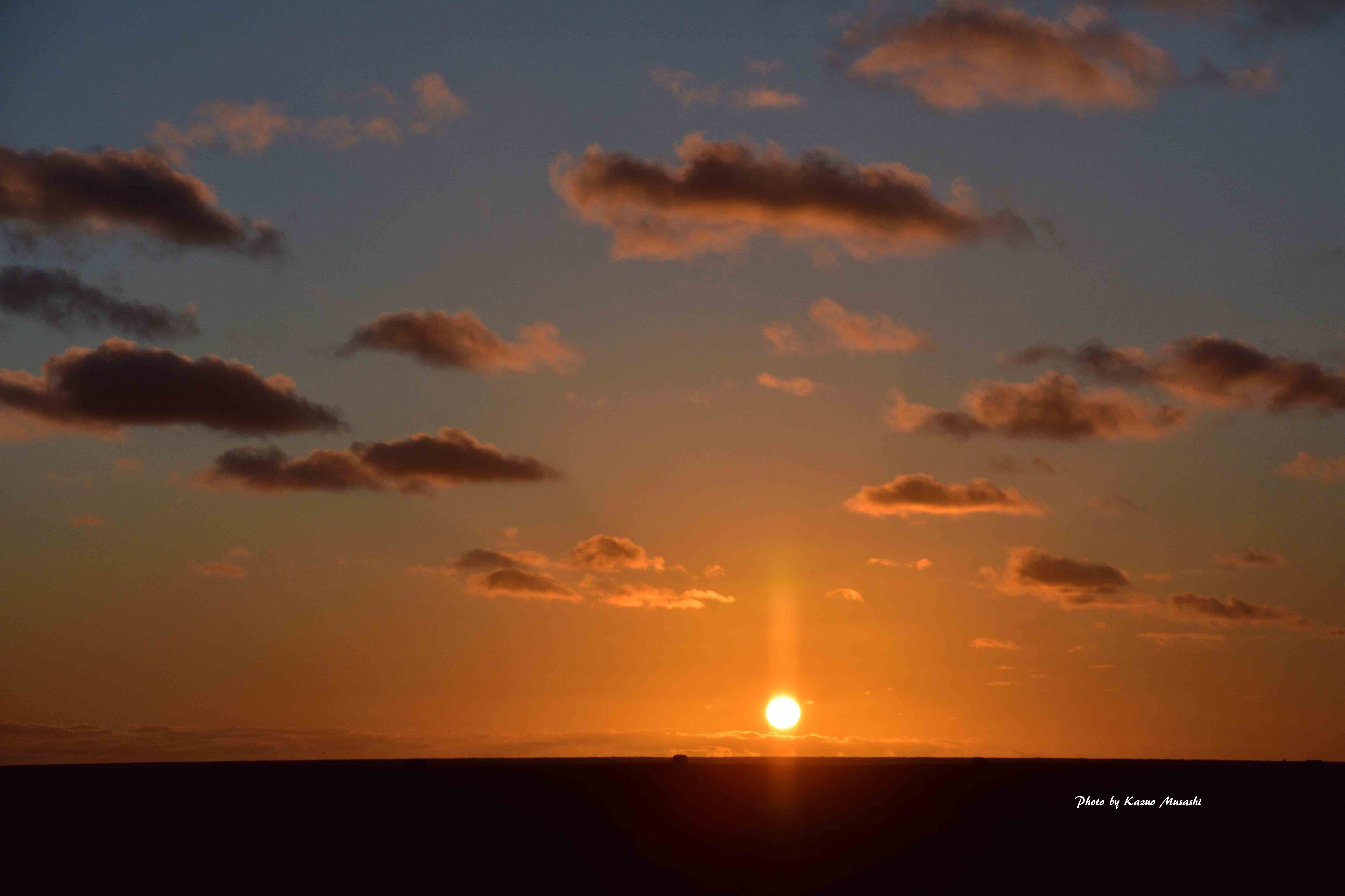 9月18日 朝食前に「ベニヤ原生花園」に出掛けた、昨日とは打って変わって快晴、綺麗な朝日を撮ることが出来た(写真1)。「クローバーの丘」にも立ち寄り、宿に戻った。朝食を済ませて出発、宿の近くの「クッチャロ湖」周辺を散策してから、「エサヌカ直線道路」に向かった。延々と続く長い道路に感激、しばらくあたりを見渡したが何も無い景色に北海道の広さを感じた(写真2)。「道の駅さるふつ公園」で昼食をとってから「宗谷岬」に向かった。ここは昨年礼文島に来た時に立ち寄ったところだが、その時はバス旅だったので、奥の方まで入ることは出来なかった。今回は広大な「宗谷丘陵」の眺め(写真3,4)、沢山の風力発電機群、延々と続く「白い道」(写真5)を確認することができた。稚内市の少し手前にある「メグマ原生花園」を散策してから、稚内市内を通って「ノシャップ岬」にたどり着いた。ここも以前礼文島に行くときに寄った所だが、今回はちょうど夕暮れ時、利尻山が夕日で輝く姿を見れると思ったが、あいにく赤く染まってはくれなかった。(写真6)夕日を眺めている時にたまたま知り合った人が稚内市内で「旅人の宿」をやっていると聞いたので、即決で今夜の宿を予約した。二日連続で宿飯が食える・・・\(^o^)/